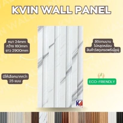 ไม้ระแนงเทียม ลายหินออ่น ยี้ห้อ KVIN เควิ่น WPC ( Wood Plastic Composite ) เกรด พรีเมี่ยม เหมาะสำหรับงานภายใน ขนาด 160cmX24mmX2.9M